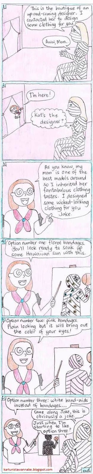 In this comic strip, we see a reference to Kat's mom, who is a model. Click old post related to this.